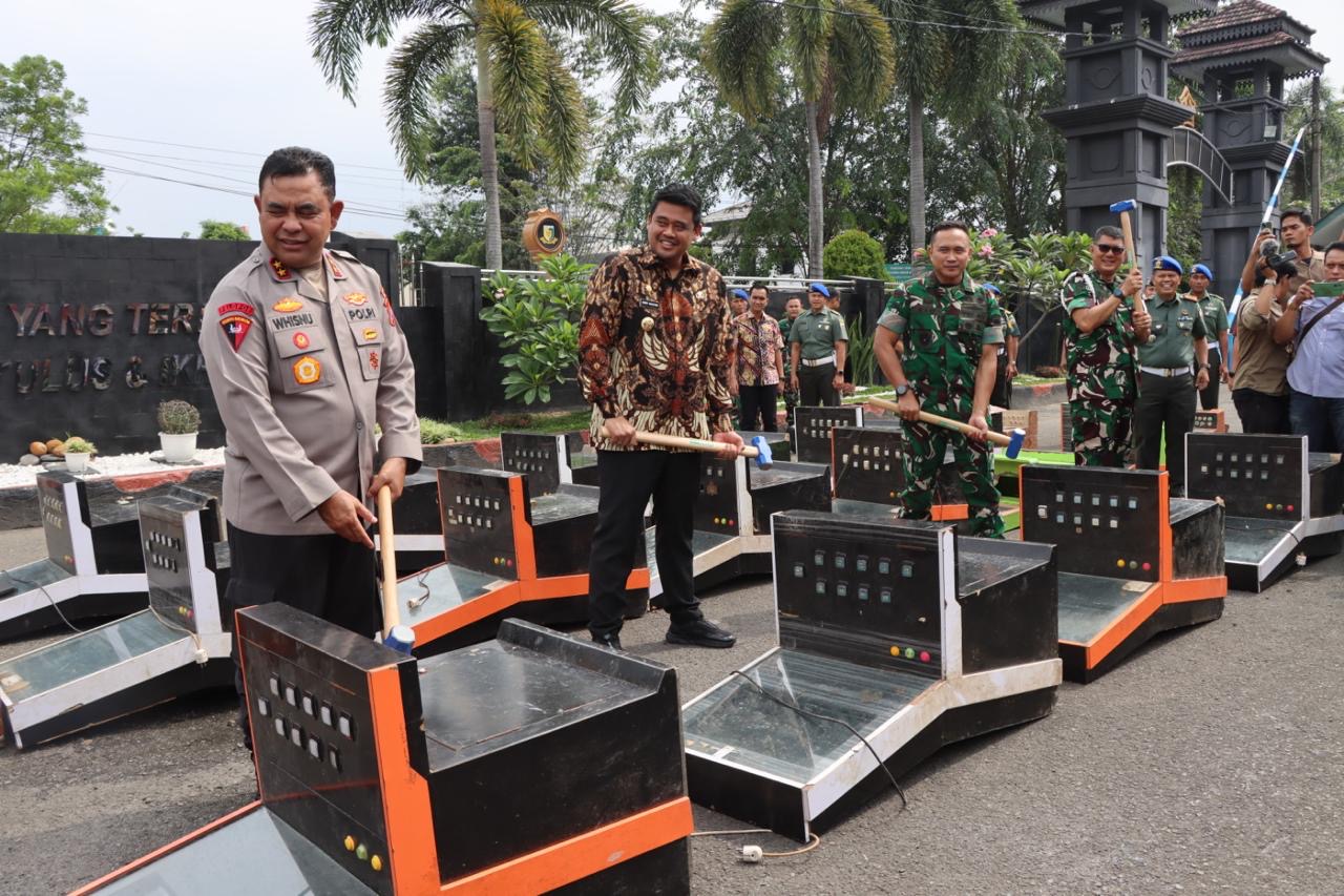 SENANEWS.ID, MEDAN – Komando Daerah Militer (Kodam) I Bukit Barisan memusnahkan sebanyak 44 unit mesin judi kerasan, dingdong (mesin ketangkasan) yang merupakan hasil tangkapan dari Polisi Militer (Pom) Kodam I/BB.