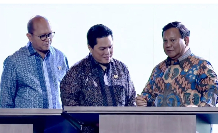 Dalam prosesi penandatangan prasasti, Presiden Prabowo didampingi oleh Menteri BUMN Erick Thohir, Menteri Kesehatan Budi Gunadi Sadikin, Menteri Investasi dan Hilirisasi/CEO Danantara Rosan Perkasa Roeslani, dan Menteri Pariwisata Widiyanti Putri Wardhana.